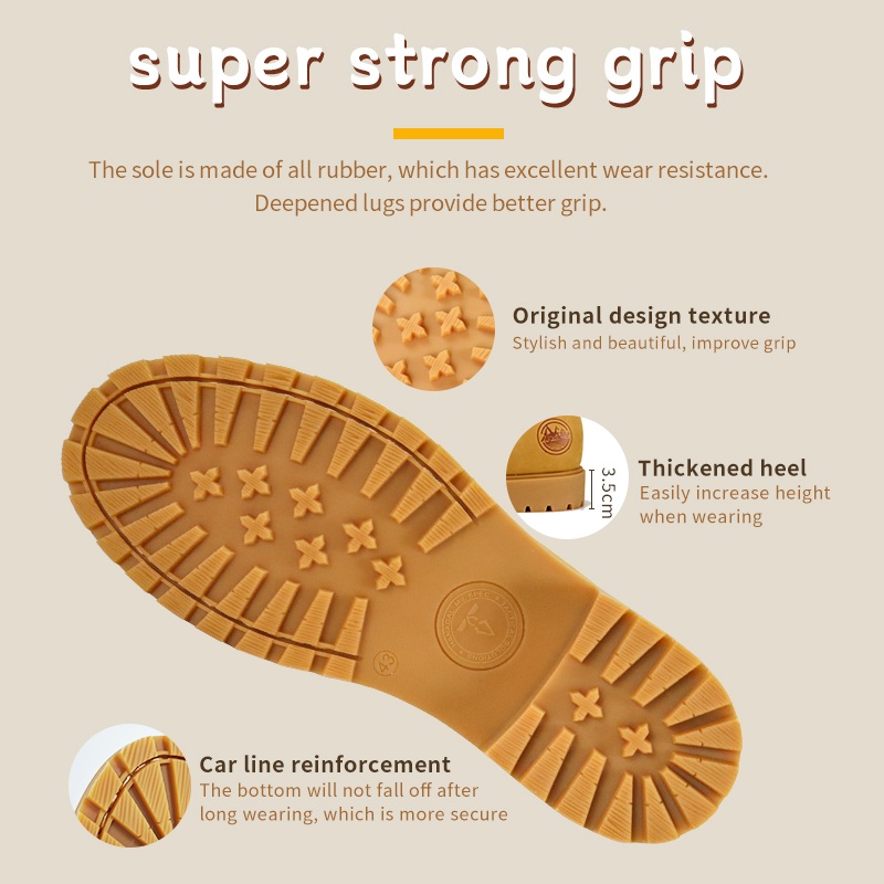 ①Originaalne disainitekstuur – näeb hea välja. Suurepärased käepidemed. Nii lihtne. ②Paksendatud konts – peen tõste. Kohene enesekindlus. Astuge pingutuseta üles. ③ Autoliini tugevdamine – kandke neid tugevalt, kandke kaua. Tald jääb täpselt sinna, kuhu ta kuulub.