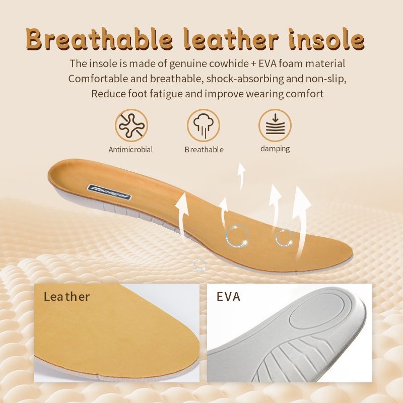 Ehtne veisenahast + EVA vahtplastist sisetald – hingav, põrutusi neelav ja libisemiskindel. Hoiab jalad värskena miil kilomeetri järel.