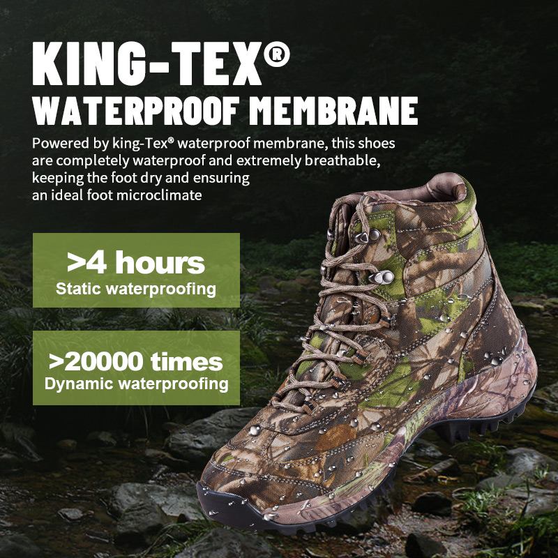 Kingtexi veekindla membraaniga jahisaapad hoiavad teie jalad luukuivad läbi soo ja muda, samas kui hiilimissõbralik disain aitab teil maastikku kaduda. Ei mingit müramist. Ei mingeid segajaid. Ainult sina ja jaht. Lisateabe saamiseks saatke meile päring.