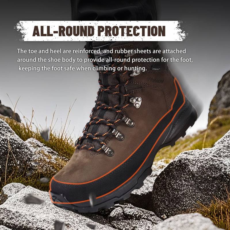 Varvas ja kannaosa on tugevdatud ning ümber kinga korpuse on kinnitatud kummist linad, et pakkuda jalale igakülgset kaitset, hoides jalga ronimisel või jahil olles ohutu.