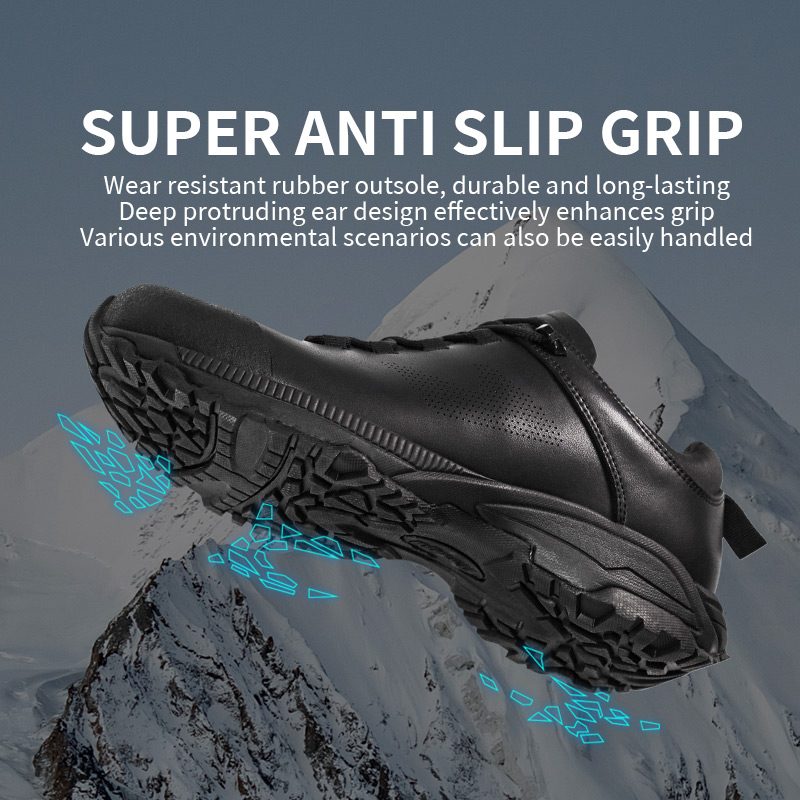 Nahast pealispind tõrjub vett pritsmeid, nii et saate julgelt kõndida niisketel teedel või vihmastel päevadel. See hoiab tõhusalt niiskust väljas, tagades, et teie jalad jäävad kuivaks ja mugavaks.