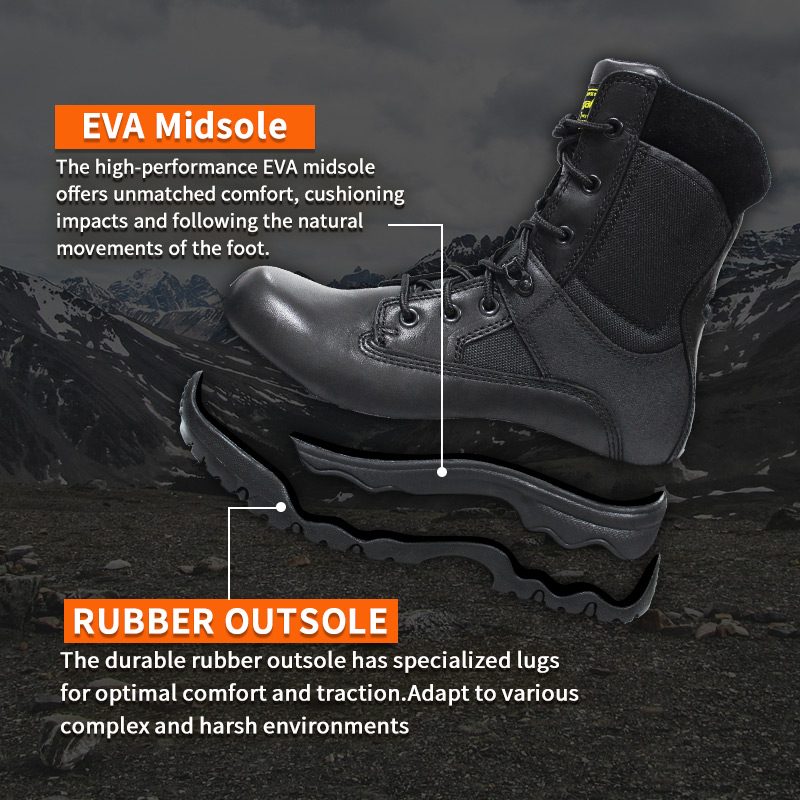 Täisnahast politseisaapad YKK tõmblukuga on loodud kiiruse ja liikuvuse tagamiseks – ilma toe või vastupidavuse osas koonerdamata, kui maastik muutub vastikuks. Pealis on ühendatud vetthülgav täisnahk ja hingav, kulumiskindel tehniline kangas. YKK tõmblukk muudab sisse/välja lülitamise kiireks ja lihtsaks. Kõrge lõikega disain ümbritseb pahkluu kohal täiendava kaitse ja stabiilsuse tagamiseks. Jalaalune kõrge jõudlusega EVA-vahetald pakub tugevat pehmendust, neelades löögi, lastes jalal loomulikult liikuda. Ja kummist välistald? Sügavad spetsiaalsed kõrvad annavad teile vajaliku haarde – miil kilomeetri järel.